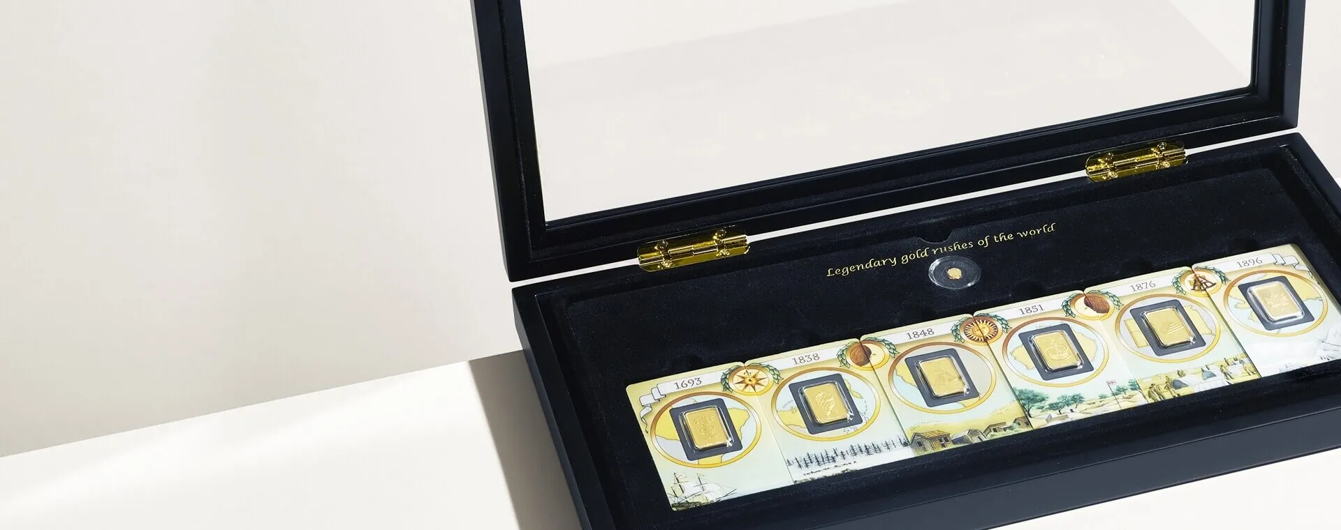 První zlatou horečku datujeme koncem 17. století ve východní Brazílii. Ta byla výrazně delší než ostatní, trvala přibližně 50 let. Fabergého vejce na druhé zlaté plaketě symbolizuje hon za zlatem na Sibiři od roku 1838 do 1839. O 10 let později plameny zájmu a chamtivosti po zlatě rozdmýchali zlatou horečku v horách Sierry Nevady v Kalifornii. Zpráva o objevení ložiska přitáhla okolo 300 000 lidí ze všech koutůsvěta. Historicky významná, byťméně známá, je australská horečka, která vzala za své v letech 1851, 1892 a 1893. Jižní Dakota odkryla zlaté poklady v roce 1876. Na konci 19. století se zlatokopové přesunuli na Aljašku.