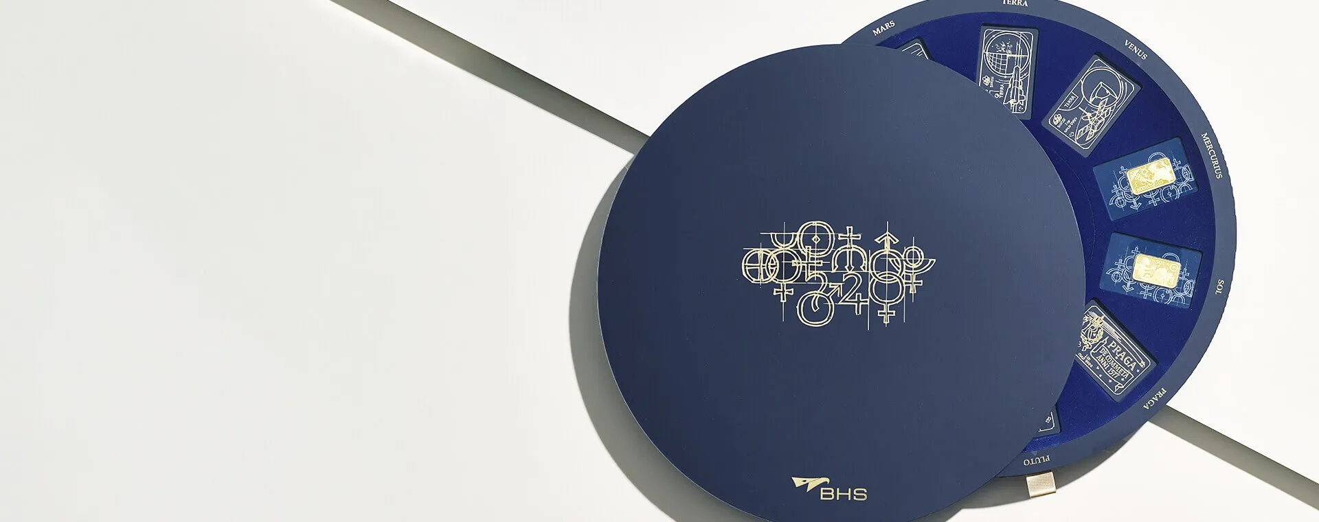 Stejně jako je v pohybu celá sluneční soustava, tak i kolekce zlatých plaket je vydávána postupně v půlroční periodicitě. Sbírka započala svou oběžnou dráhu v roce 2019 a ukončí ji s příchodem roku 2024. Kolekce tedy roste postupně v souladu s plynoucími roky. Je to vůbec poprvé, kdy sluneční soustava dotváří příběh zlatých slitků. Konečně, všechno zlato ve vesmíru vzniklo před dávnými eony v srdcích umírajících hvězd těsně předtím, než bylo s výbuchy supernov rozptýleno v nekonečnu. A nyní právě to samé zlato spojilo mytické fascinace a moderní technologii v jednom unikátním uměleckém díle, aby se stalo ozdobou vašeho investičního portfolia.